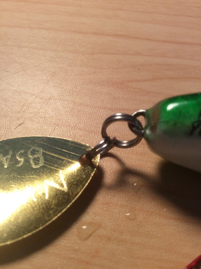 Location: oswego, il | When the blade spins it creates much more drag and will straighten the action. Now with the split rings it will flop and flash which I am.sure what you were going for. Been down this road. Cool bait, hope your buddy likes it. |