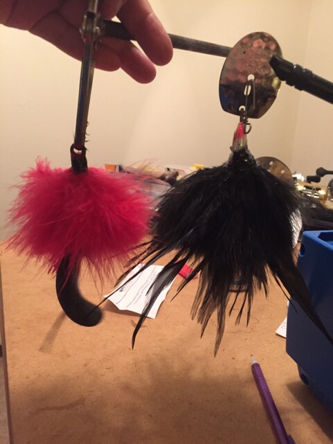 Location: Miltona | Custom northland stud-finder to be exact! MI chatterbaits suck! My fishing partner, username Cloud7 and I bought 70 of them at whole sale price because they're discontinued. I tie them up with marabou to beef up the profile. We call them "twerkers" haha. Here's the latest one I just finished tonight. It's still drying.