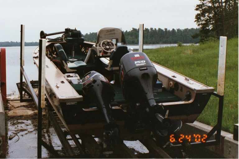 Location: St. Louis, MO., Marco Is., FL, Nestor Falls, ON | Here is my Lund ProV 1900 SE going over Turtle Portage. Good thing we had high water last year. I wouldn't want to try it this year.