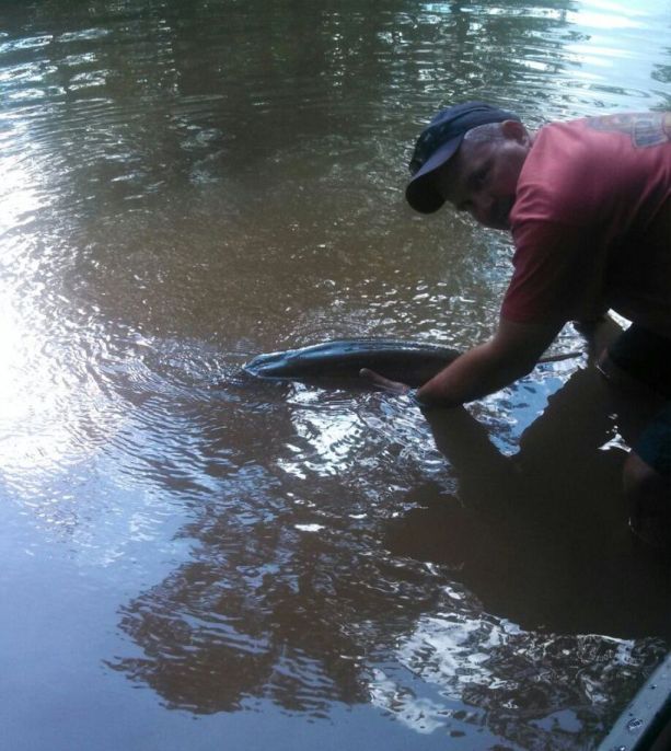 Fished up and down the creek and finally hooked up with a 44 incher. Don't think I could have landed her if I hadn't had a great net man helping!
