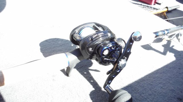 | finally able to throw the S with the Beasts jigging handle and if you're looking to get a little more cranking power its the way to go. Night and day difference. |