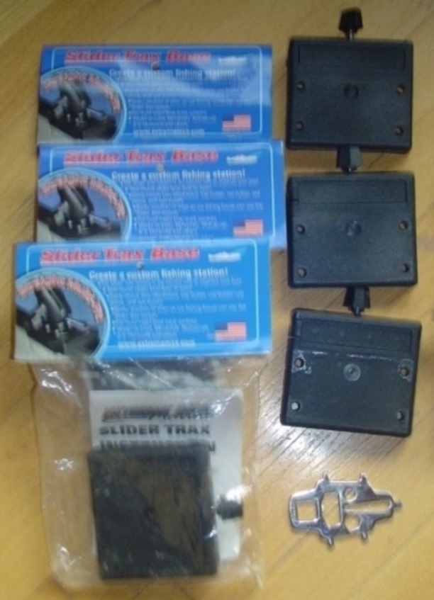 For sport trax or the like: 6 - Slider Trax Bases (3 new / 3 used) The used ones have 4 1/4' mounting holes drilled into them for rod holders bases (I believe the pattern is standard with almost all rod holders...mine were RAM) My new boat has 45 degree sport tracks these are 90 degree sport tracks. All six shipped to lower 48 for $60...Paypal only.
