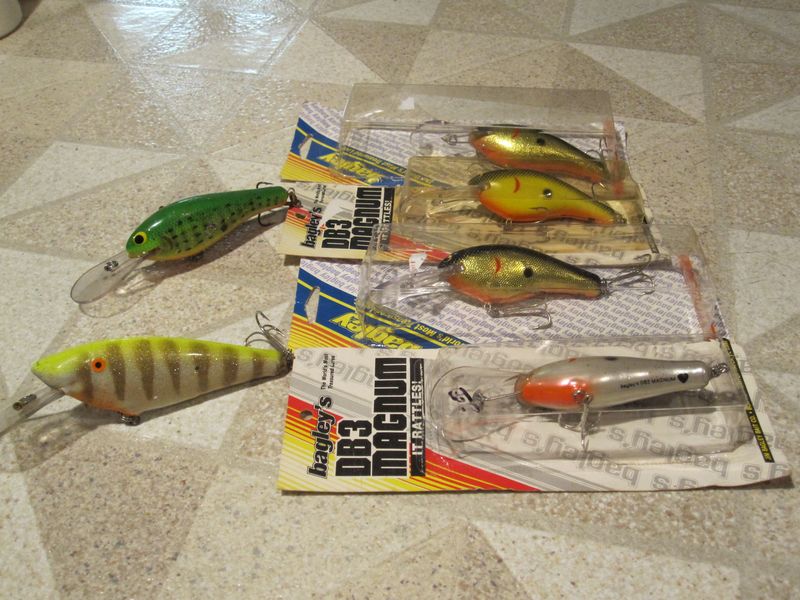 | I have 8 - DB 08's never used ( no box ) old model; thin lip. ( yellow perch, black chrome, red craw , red musky, sparkle white shad, blue back silver foil, perch back gold foil, orange musky back gold foil ).
