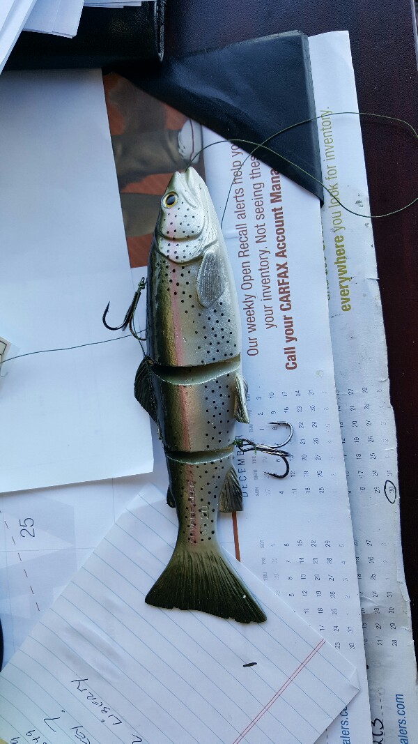 Shadzilla (like I said, new to me): used a few of the deep 9"ers and a couple of the big ones. Didnt have any luck yet on the 9", but have great faith in their future. SEEMS like a good option for when you want to throw rubber but don't feel like jerking, twitching and hefting heavy beats out there but want to hit deeper water. The big ones have a fantastic large profile, had a few smaller fish eat them but didnt stay unpinned. If you don't lob them, you'll be unhappy as you will get more than your fair share of "zilla-balls" (not something from the movies too horrifying to imagine). Owner of the company says a new internal rig is coming out that will lesson the frequency of the z-balls, looking forward to seeing this.