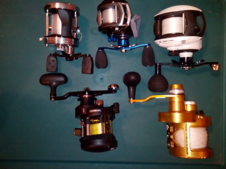 | Having a slow day I spent part of the day reading up on the most desired reels for Muskie fishing. Seems that the Shimano Tranx is on a lot of wish lists of Muskie fisherman. I'm transitioning to Muskie after a lot of years fishing the salt for tuna, Yellowtail and freshwater for trout and salmon. I've seen and handled the Tranx on the Yellowtail and tuna boats, it's a big reel! I use a Toro 60 and various other reels and they are large but not the size of the Tranx. Lacking experience of actually seeing what is really used on the lakes for Muskie maybe some of you can tell me what the average size reel is really being used. I know there is a big difference between the equipment I see being used on fishing TV shows and reality when I actually get to the lake to fish myself. This got me wondering how large compared to each other my reels were. Never really thought about it before. The Toro 60 looks really large and the Tranx is a lot larger.LOL Reg in SoCal