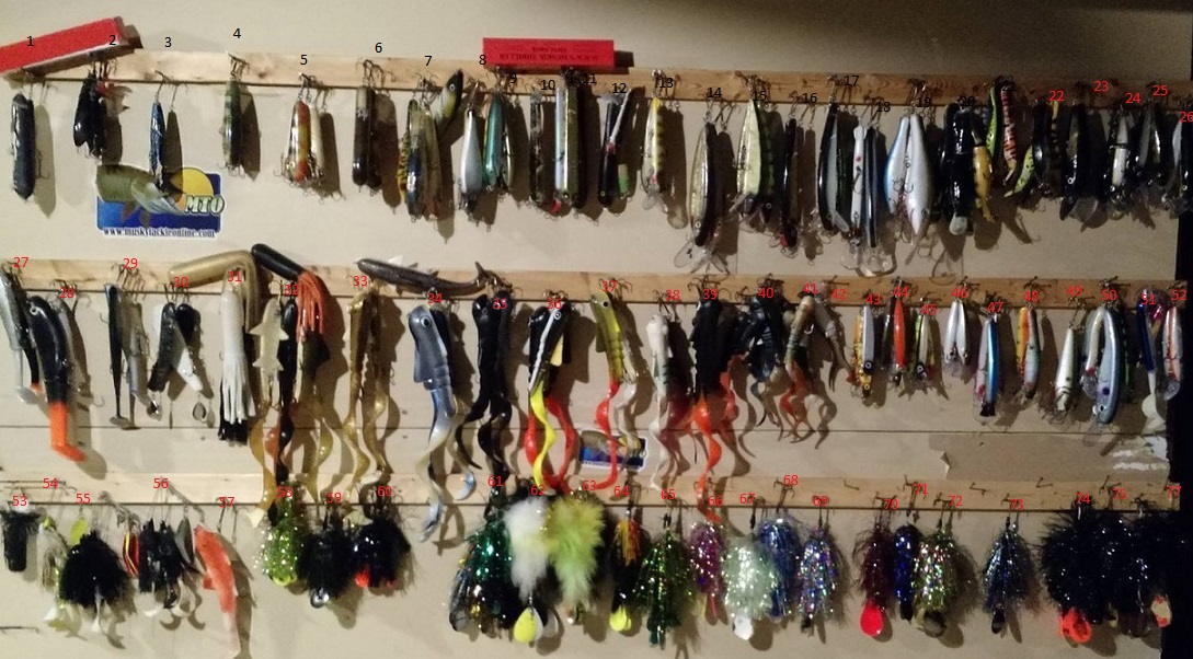Whomever is closest to the total number of baits AND names (make and model) of the most baits wins the top prize of 4 baits, a t-shirt and a sticker.