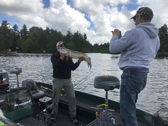 Location: Rhinelander, Wisconsin | Reports are the bite was fair today through the weird cold weather and occasional squalls, with 12 fish caught. Keith is fishing the event and had an encounter with a true giant. As he was getting ready to boat a 34" northern, the big muskie T-Boned it and ripped out about 20' of line....and dropped the Pike. No mystery where they will start tomorrow...