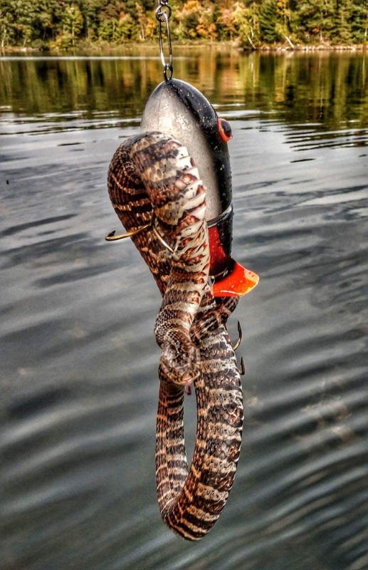 X100.....I have been bitten by these ( and they do bite early and often) and muskies, muskies are way worse. Those snakes are tough, I wouldve just cut the hooks, it would survive. |