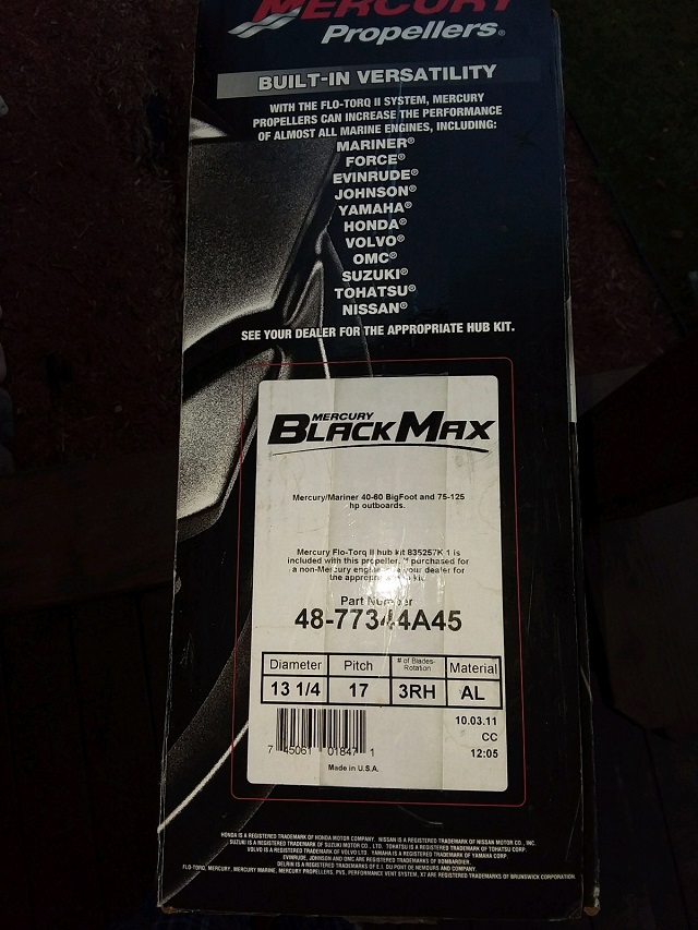 | For sale: NIB Mercury Prop with Torque Kit included. Asking 100.00