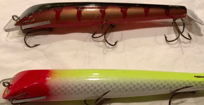 Location: Sartell, MN | Clown pattern weighted. Crawfish pattern not weighted. 1 bait shipped= $18. 2 baits shipped= $32.