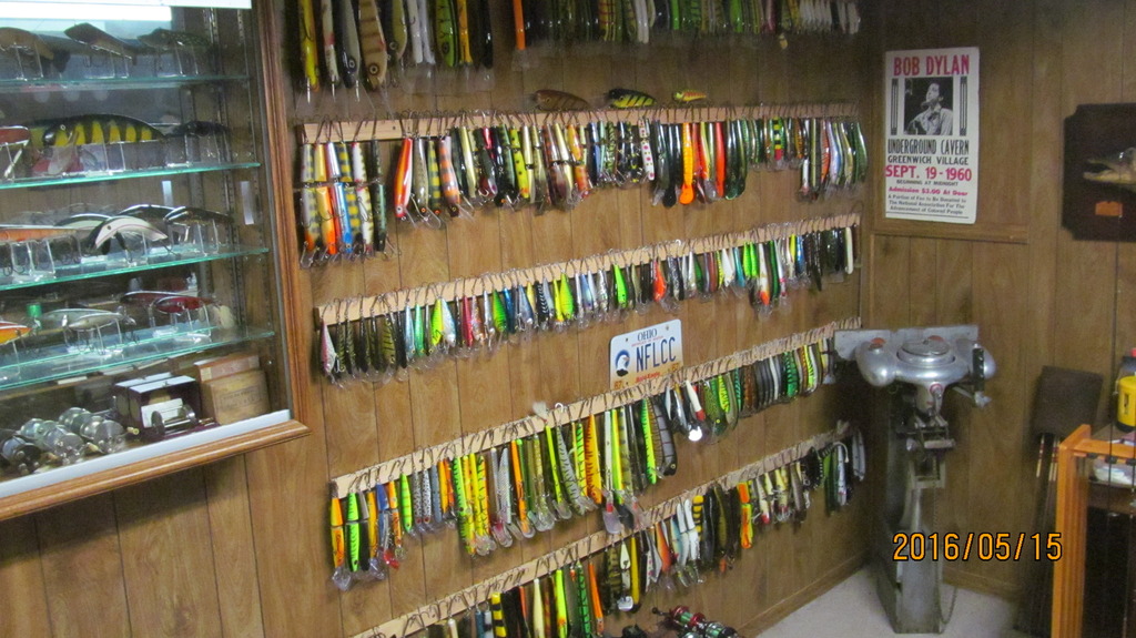 | Love the Lures hanging !! I also have that same problem--Mine are boxed up in TUBS -- So I like the lure displays for others to see... I will get mine up 1 day-----Working on getting a house built this year with a 1850 sq. Ft Unfinished basement so I can do what I want with it..... I am guessing I am at say 700 or so Musky Lures---- Have 11 Large Plastic Storage Tubs of them... SO POST THEM UP---- I am looking for Ideas on how to Display Mine. |