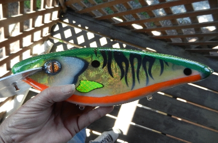 Location: Moses Lake, WA | I've been experimenting with a new holo foil, The first pictures show some of the color effects from different angles of light incidence and intensity prior to lure paint. The final pictures are of the finished lure, 12", basswood, one rattle chamber.