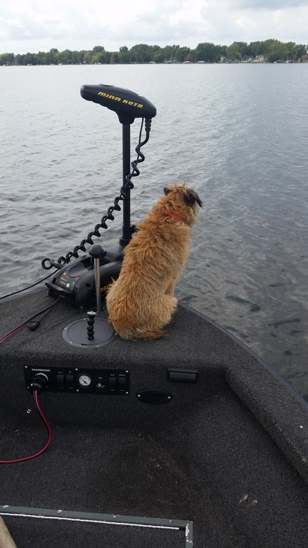 Location: Kronenwetter, WI | Okay, So I names him Jake since I’ve boated many a musky on the 10” Jake. Here is a picture of his first boat ride. At 4 months old he was a champ in the boat. Heres to Jake, my new fishing partner.