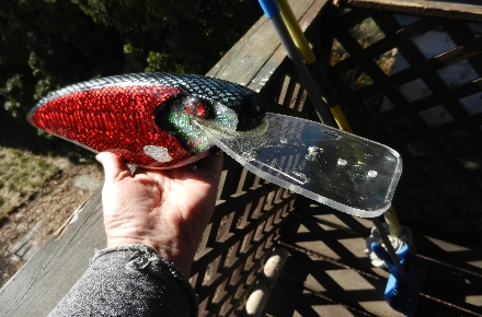 Location: Moses Lake, WA | Decided to experiment a bit with clevis pins in an acrylic lip that is roughly 1/3 the length of the lure. Should dive like a champ, one rattle chamber, two guy wires to support the acrylic lip.