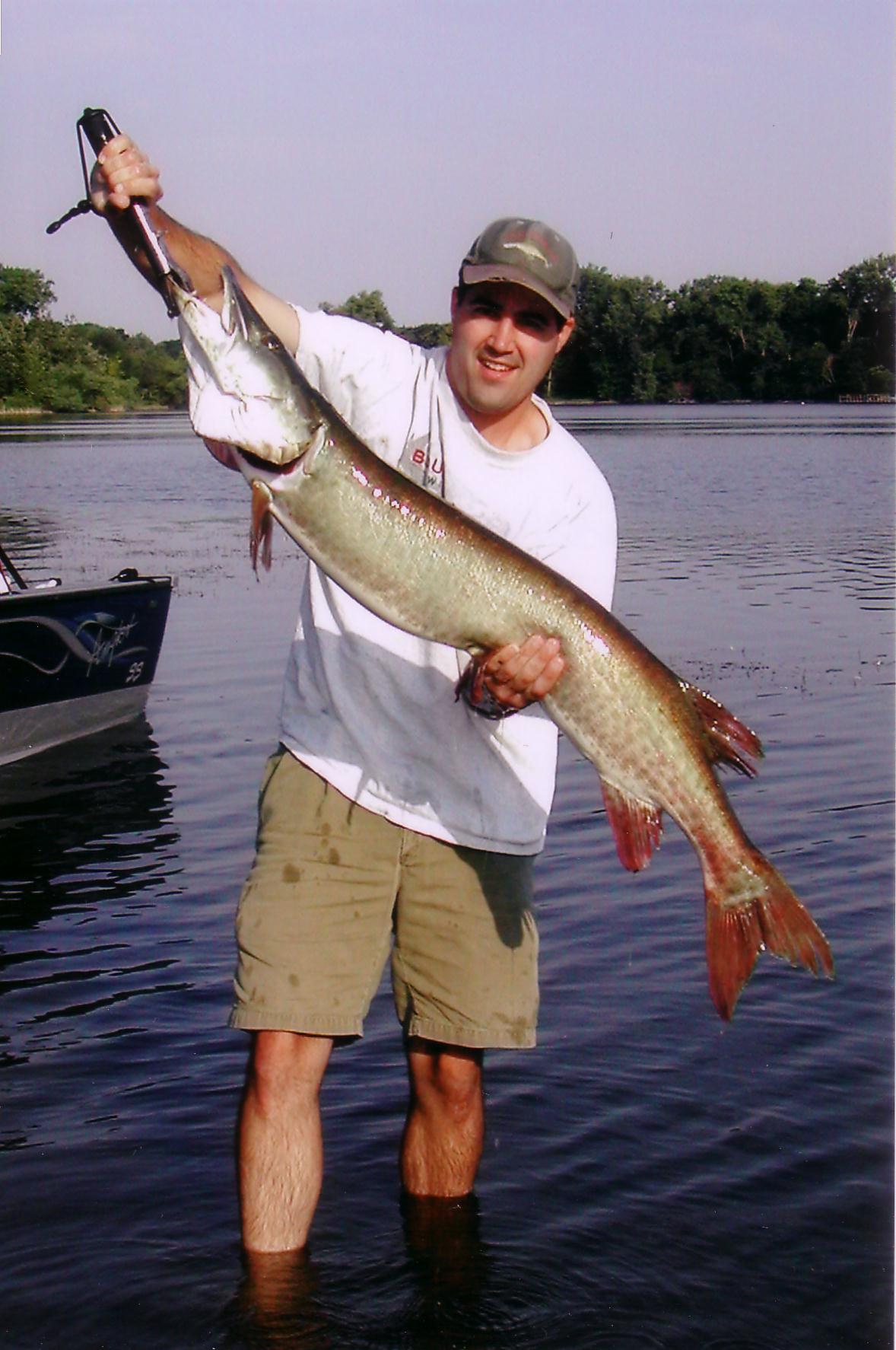 | This was by biggest from 2003. This fish was 49" long and caught from a minneaplois metro lake on a Top Raider from 3ft. of water in the slop.