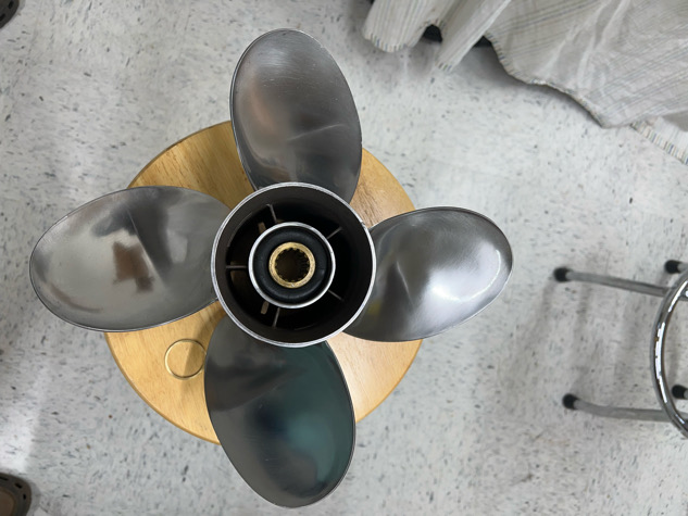 Location: Pewaukee | Powertech PTR4 4 blade - 16 pitch, 15 spline Yamaha, 4.25” gear case. Class D 40-140 hp. Hub is pressed in. Has some rash but that does not affect the performance. See pictures. On my Alumacraft competitor 175 with a 115 SHO, fully loaded, 4 guys, it runs 39 mph at 6100 rpm. It has a really good hole shot. Can send more pictures.