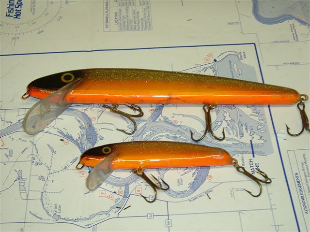 Location: north central wisconsin | Here are two slammers. They are 5($13 new I think) and 10"($19 new) golden shiner pattern. Then 10 has never been used(the hoks are not the best though but what came on it), the 5 maybe was thrown twice. Make an offer. Otherwise I would like a mallard topraider, jerkos, grandmas(9") with the shallow jerk lip, and a walleye shallow invader with the rattles.