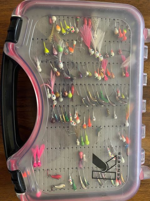 Location: Rhinelander, Wisconsin | Over 60 Kenders Outdoors tungsten jigs in a Kenders double-sided floating case. Retail $445, sell for $200 OBO. Best for crappie, perch, bluegills. Buy this and I'll find the box of K-RIPS and T-RIPS I have and toss that in.