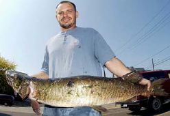 Location: Athens, Ohio | Sickie - the article said he was using 80 pound test line, so he musta been ready for action. Apparently, the fight was not over once netted, as the article describes another battle in the net. That fish literally fought itself to death.