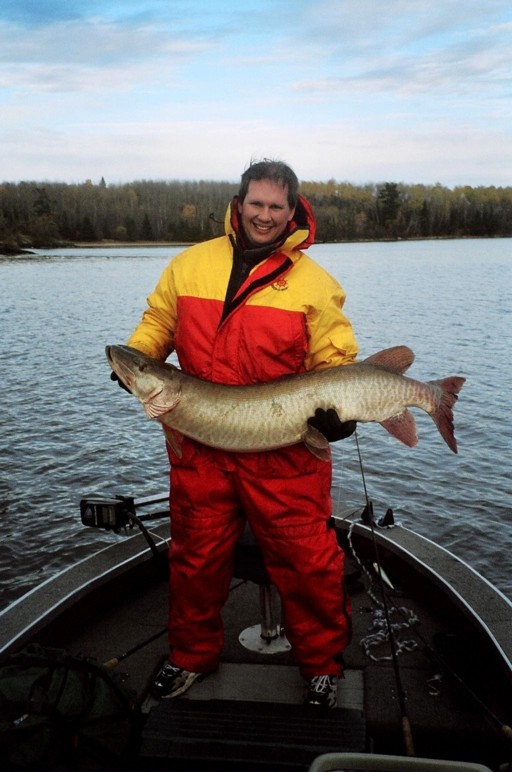 Location: Breezy Point, MN | Here's a few fish caught on November Fourth, I took them in about the span of thirty minutes apart. Mine ate a 9" Suick (41 incher) and a jointed Depthraider (42 1/2 incher) that rainy November day. I kept thinking of the song "Cold November Rain" by Guns and Roses out there! Ed, my partner, caught his 36 incher on a Baby Depthraider. You can really see the rain coming down is his picture. It was chilly and wet for sure, but we caught three fish that day so we had a blast!