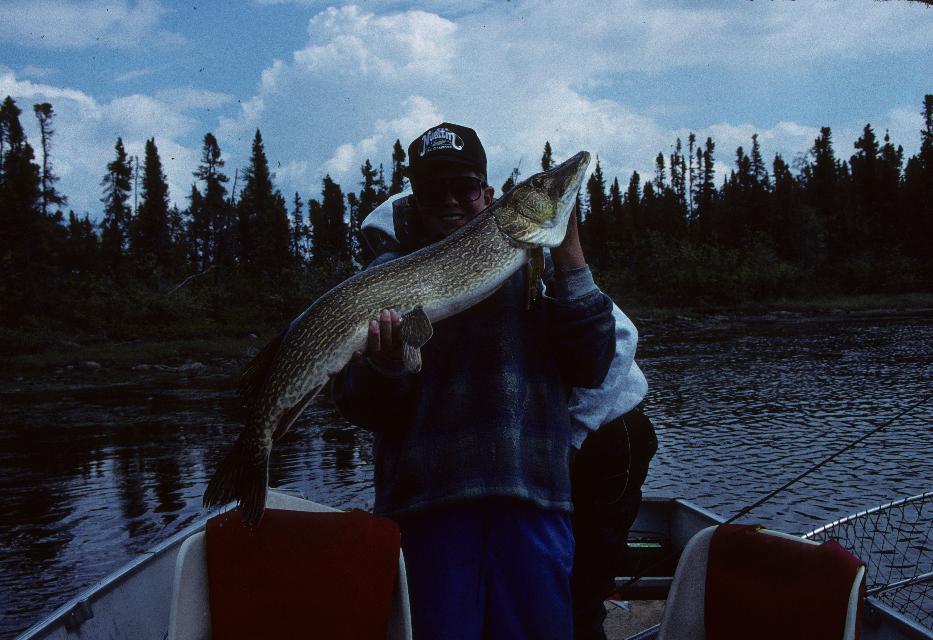 Location: Iowa | Here is a 46 x 20 I got at Nueltin Lake when I was like 15 years old...so some 7-8 years ago...well over the 30 pound mark...had to have the guide help me hold the beast...with me being 6'2" and 240 at the time it made this fish look smaller...my guide is 6'5"...kinda dwarfs the fish...