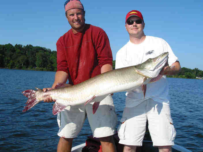 Tim Gardner and Bob Nelson won the Minnesota Muskie Tournament on Mille Lacs today by catching ANOTHER pig, a 51" beauty, and ANOTHER at 43.5". Pictures attached. Watch the photo album for all the fish from today, including the 52.5 caught by RONNESTRAND, LUKE and JENSEN, CHRIS...plus another fish that took them to third place. OLMSCHENK, BILL OLMSCHENK, LEE took second with three fish from 41" to 46".