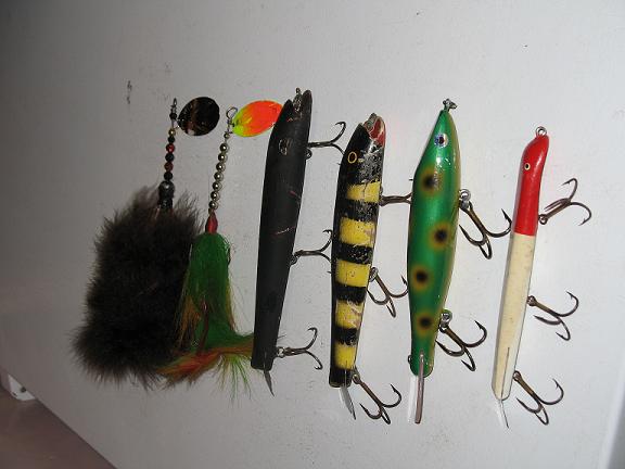 2) Windels Harasser double tailed. Has some water time, and the prism tape is off the blade. Tail is in great shape as are the hooks. $5.00