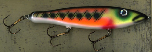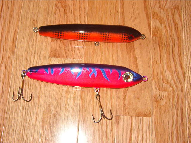 | Stan what do you charge to paint lures? I like the chrome perch, also think something in a sucker pattern, 6 inch glide bait, raw wood only hook eyes installed in maple. |