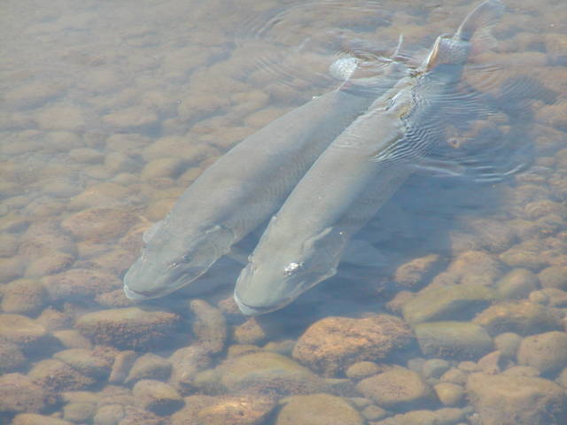 Location: Maple Grove, MN | Seems those two could be a female and a male. Males can get up to 45 inches and that could be about the size of the two fish. It could just be an older male with a middle-age female. Not that unusual in the human species of course, except the older male human usually needs lots of money to attract a younger female. Or at least must be a good cook and house cleaner.