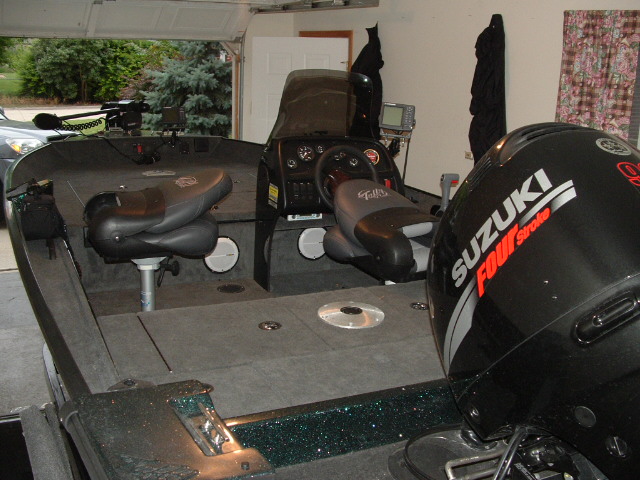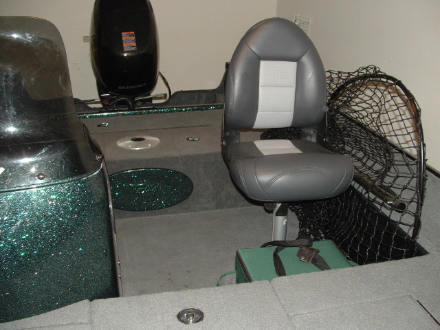 did alot of night fishing, i liked the combination of tons of storage and open layout of the tiller. it meant everything had it's place and there was no clutter tripping me up when netting a fish or sitting down to pick out a backlash (but no one ever gets those...right?). a full size Frabill fits perfectly in the cockpit area. the courtesy lights inside the livewell and rod locker, along the splashwell side in back and under the nav light up front are absolutely great.
