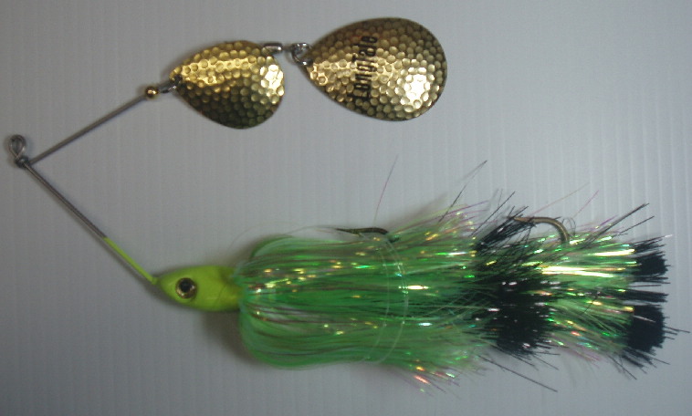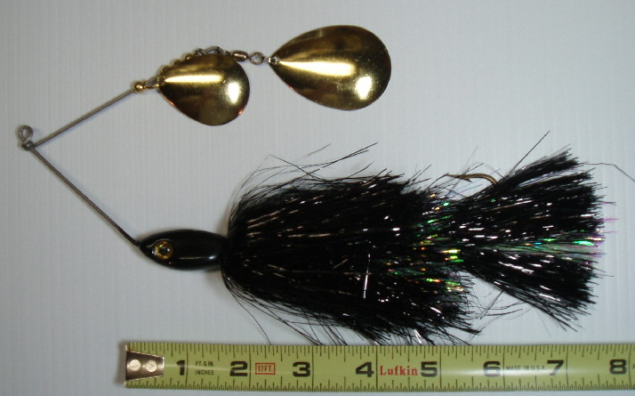 I'd report it as 7 inches (nose of head to tail of lure-body), however with the recent Big Bait craze, some suggest I should report it as 10 inches (measure from the line-tie to the tail). What is the proper way to report lure lengths on a spinnerbait? Thanks for your help! |