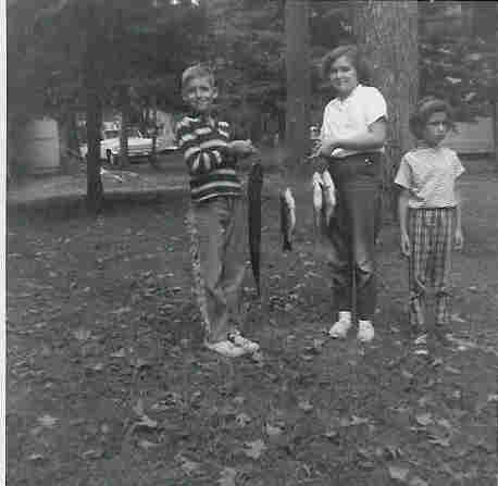 | 11 people in a station wagon. A 14' wooden boat with a 7.5h.p. motor for navigating North Twin lake. Every trip seemed to take forever, the lake seemed so much bigger when you were only going trolling speed the whole way. Lots of walleyes. Drawing cards to see who got to go out fishing in the morning and evening (I still think the deck was stacked). Jumbo perch fishing with dad at the oars and a cane pole over each side. We would fill a fish basket and then all 11 of us would eat them all for supper. I learned to filet fish at an early age. Fishing with a sinker, spinner and a minnow, and learning how to tell how deep you were by watching the angle of the line. Before the advent of The Green Box, Pa would take a piece of mason twine and attach a weight and drop it in as we approached a spot. He would line up the shoreline markers...."That big pine tree has to be on the right edge of that guys house, and that flagpole has to split the windows over there".....as the angle of the twine changed, we knew we were coming up on the bar and he would systematically hold us at that depth at the base of the break better than anybody with a trolling motor could. Driving around the lake to go to the beach to swim, because Lord help us if one of the girls would step on a weed.