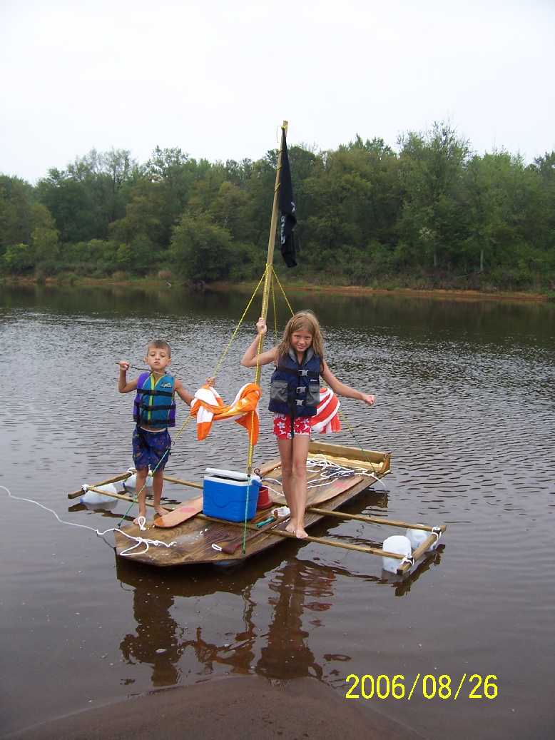 Al, That is cool!! She must be a seaworthy craft, as the ole Jump can whip into a mighty rage as I'm sure you know.....YARR! I get a kick out of seeing stuff like that(except when I am on a float and 15 of those types of things are floating down the same time we are...heheheh). With all the chili I ate at our club banquet last night, I wouldn't need my trolling motor for the black pearl either.... Those your little ones?