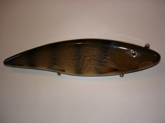 The weight of the lures. The ones shown are about 5-1/2 to 6 oz. I am hoping down the line if people want my baits that I can customize them for thier needs and locations. One guy may want one that comes up fast. Another guy likes a slow sink. Maybe over the winter they request an order for 3 to 4 of them. I don't plan to go into heavy production but I would like to cater the needs of an individual that is serious about his baits. All of us the fish all kinds of fish have times when the smallest of detail makes the difference. A colored hook, a certain belley color, or even lures action. I hope people are willing to wait for a custom made bait that fits thier needs. If I can fill that small hole or nitch great. If I get a following and I can hold up my side of the bargian, a great relationship can be formed for a long time.