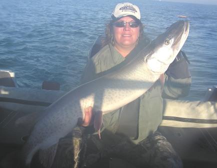 Location: Muskegon Michigan | My wife would have said quote( well honey we will have to fish the quiet side of the lake and we are using the the big boat!!) I have a wife with a different perspective. She is the 2006 Muskies inc womens division champion. We started fishing this year in January and will stop December 31st. She has 103 muskies to date in 2006 and has stood besides me in 7 foot waves and horizontal Hail. Snow storms ,Breaking ice , and Rain that had us running twin bilge pumps. I am proud of her. She is one in a million.Meet Michelle King. Kingfisher