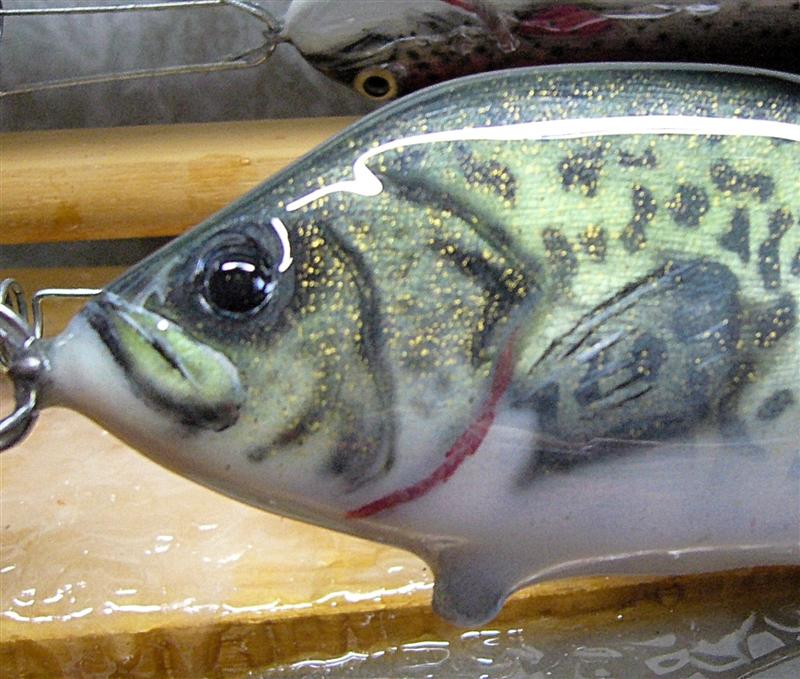 | I have only done a few crappie patterned baits and was not that happy with how the flecks/speckles turned out.