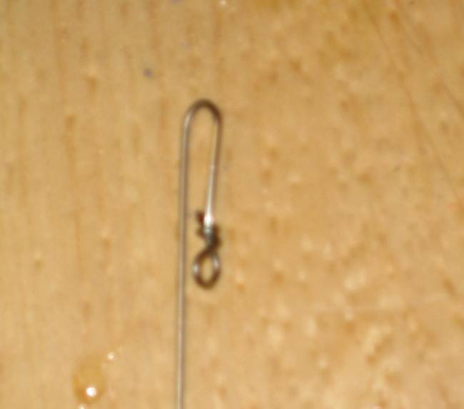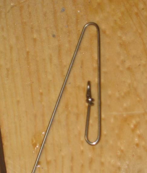 Location: oswego, il | I have made my own snaps like baldy has shown there as well using 360lb leader material. Only difference is, I make my loop push against the wire to keep it from opening instead of being in the middle of the end that hooks. |