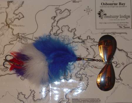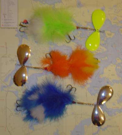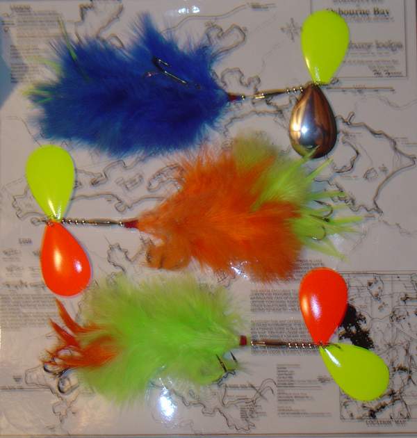 Location: The Yahara Chain | New colors are available. I am now offering black, purple, white , orange, chartruese and blue feathers. Blade choices are still nickel, gold, orange , chart, fl. red and fl. green.