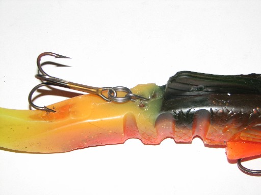 I see what you are saying. The only reason I can come up with is that it "get's in the way". When a fish, lets say t-bones one I feel that the top hook does not allow the fish to completely come down on the bait. Almost keeping the fish's mouth open more instead of letting it clamp down on it. I have lost fish on dawgs, every year I lose fish on dawgs...but it seemed to be worse when the top hook was on the bait. Guess it just is a confidence thing...and you know how important that is