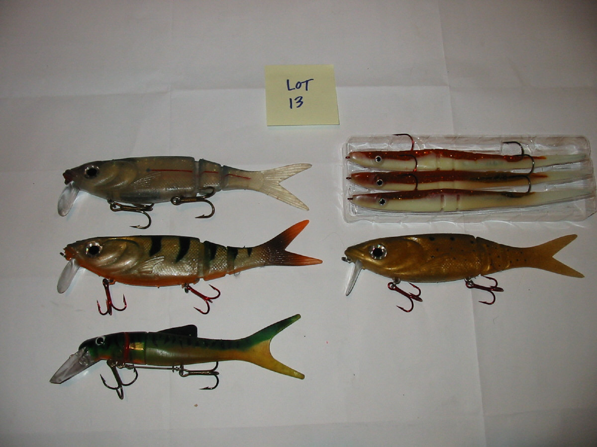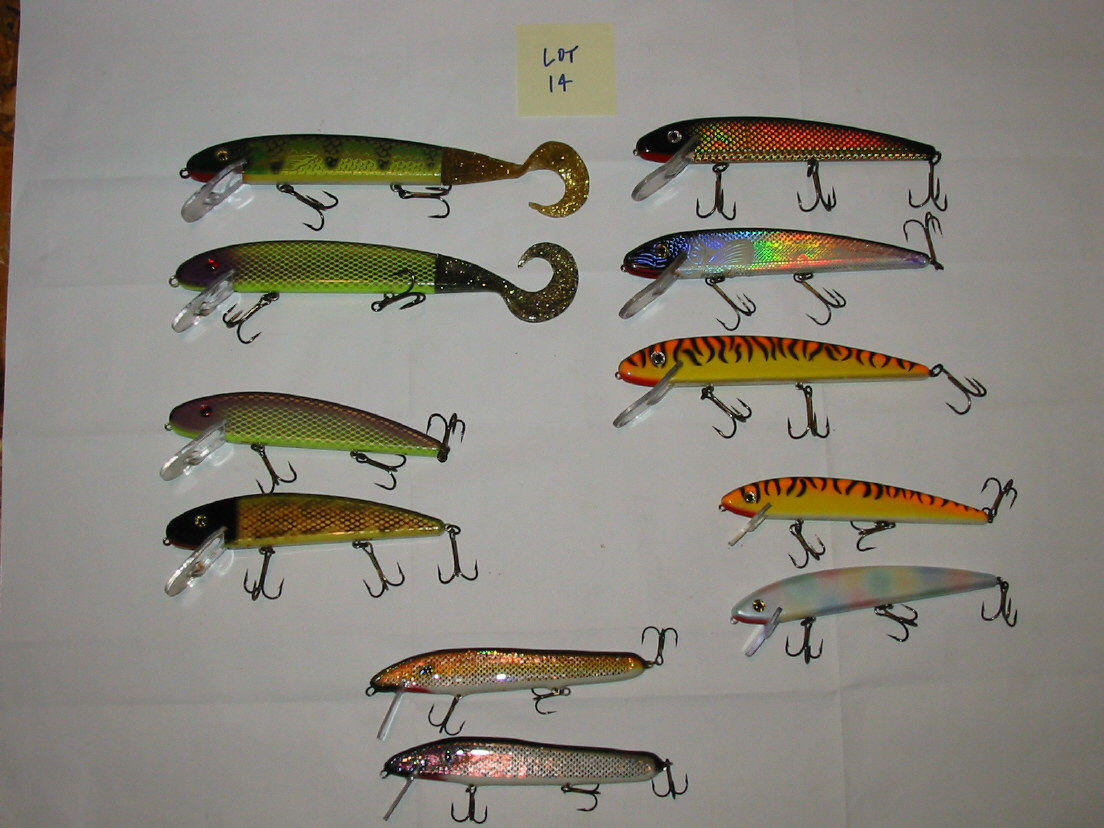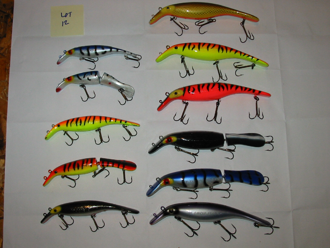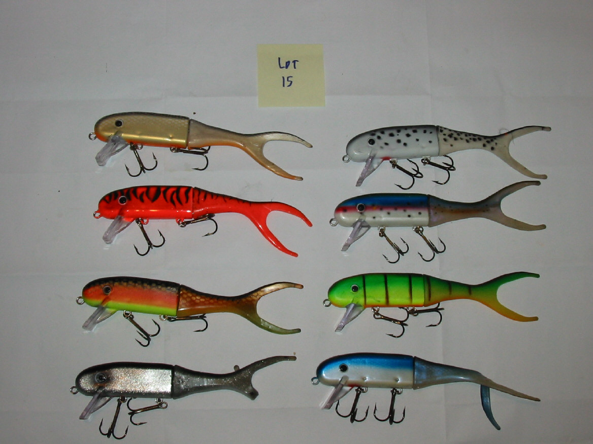Lot 11 - (12pcs) Bulldawgs. SOLD SOLD 9" $99. ( Blk-Or has torn tail, MaraboDawg tail is repaired.)