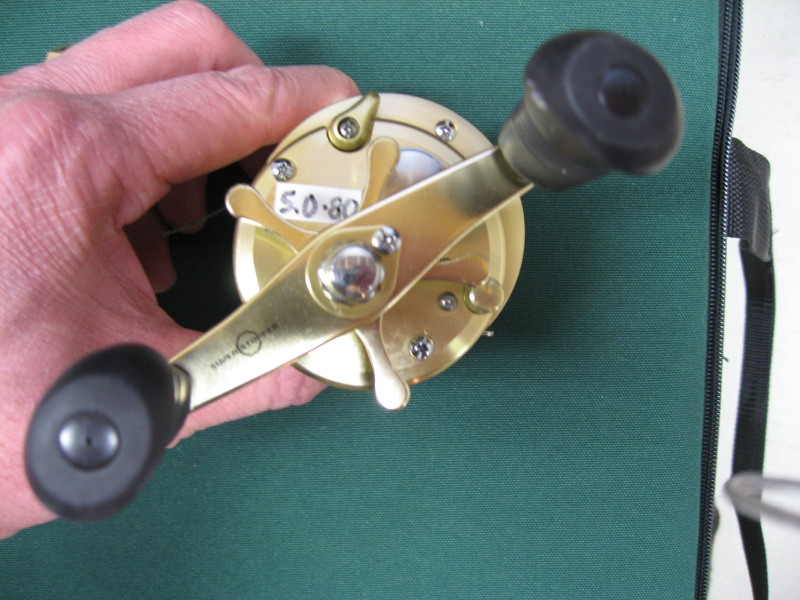 (SOLD) Shimano Calcutta 401TE with box, wrench oil, etc. I had this serviced by Shimano last spring and used it about 4-5 days on the water last season. It does have normal boat rash, but it is in excellent working condition. Spooled with 80lb super line (Power Pro or Spiderwire).