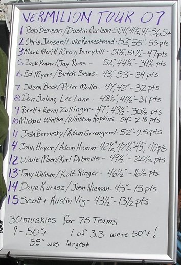 | You are correct! I stand corrected. I just counted down on the chart w/o looking at the actual placings. What a lake and what a group of muskie fisherman! |