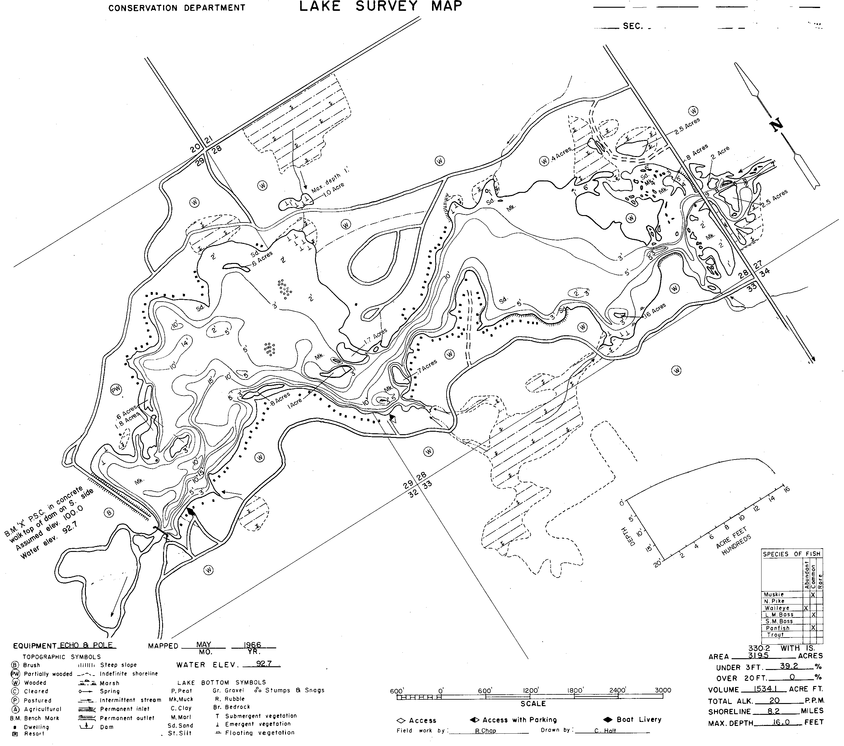 | I think the other one I mentioned is worth more of your time...heck I fished it on the opener for the first time in 06 and we put one in the boat and had shots at another...I saw a pic on lake Link of a very fat 44 I think that was released...it is a bugger to fish and gps is a must out there but it has quite a few fish in it.... |