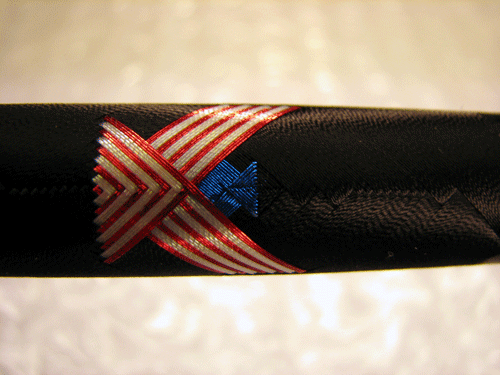 Here's the Van Halen buttwrap that Todd Cleveland & I have been thinking about since the Milwaukee Show last year. My son bought a Bears Van Halen Phantom and this is what I came up with on a scrap blank after we took it home Saturday night. I wanted to do it in thread rather than paint. Todd suggested making the black wraps thicker like the picture of the guitar. He wants a different rod for each of the three color combinations that Eddie has.
