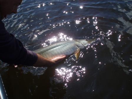 | Not a big fish, but one of the better release shots I have.