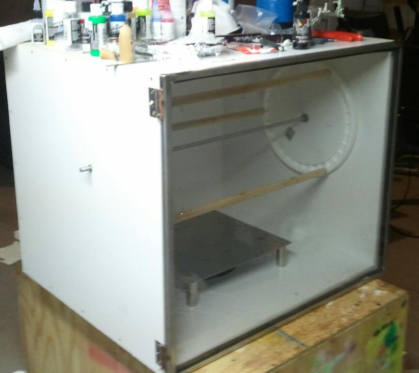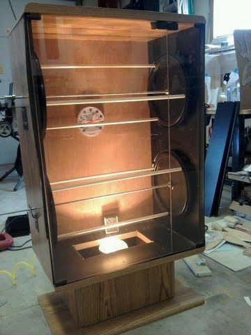 | Here is mine I have to find a better type of motor. Every BBQ motor I have used has a dead spot in it somewhere. As it is rotating it pauses for 1-2 seconds in the same spot everytime. I use a 100 watt bulb as my heat source I can easily get it to around 90 degrees. I also have the light hooked up to a dimmer switch so I can control the heat better.