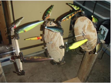 Location: WI | Here is what has been working for me. The picture with the clamps is only good for lures up to 8", after that the clamps do not have enough grip and the the lure flips on every revolution that the wheel makes. The other wheel I use for everything else, it is good for lures up to 20" long.