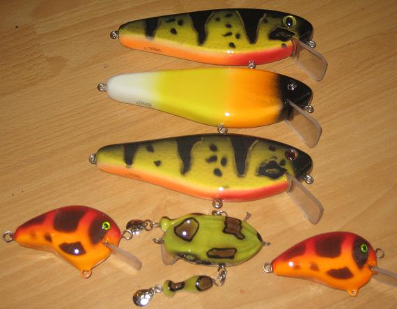 Still bored waiting for Spring thought I'd show some new baits. Some birds, small bass baits, 10" topwaters, 4 new monster Bullfrogs and some shads. Hope you like them.