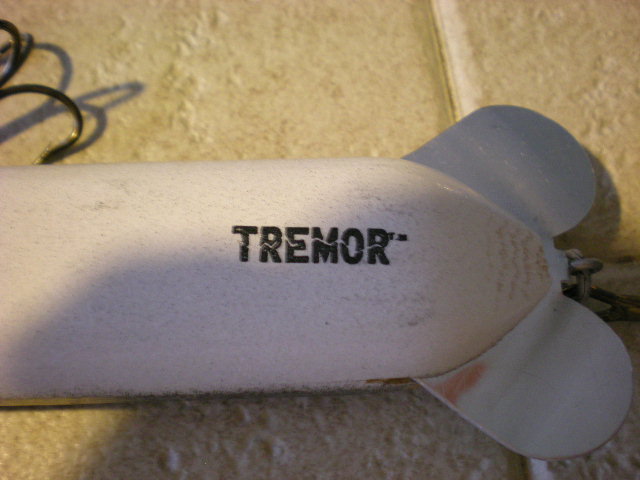 company making a musky jerkbait. It has the word TREMOR printed on the bait.