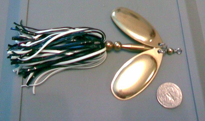 | Actually, you will like that skirt material when you see it in the water. I would love to find material like that. The hook should be fine. Blade spacing is important, my rule of thumb is that I like 1/4"(a bead for me) spacing from the bottom of the blade to the skirt. You may run into issues getting the blades started. Great looking bait by the way, keep up the good work. | |